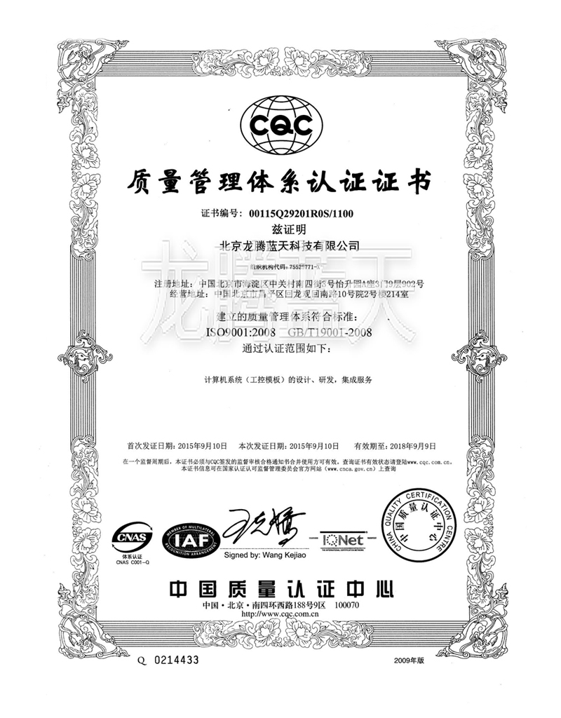 质量管理体系认证证书